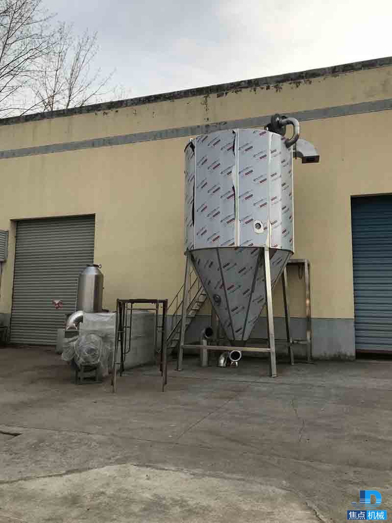 ①塔內(nèi)采用氣掃清粉系統(tǒng),防止物料干粉長(zhǎng)時(shí)間粘壁現(xiàn)象,使物料被快速回收。(如遇含糖量高的物料,容易粘壁,本公司可設(shè)計(jì)成夾套風(fēng)冷式,防止粘壁)