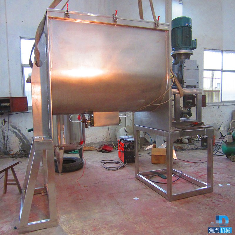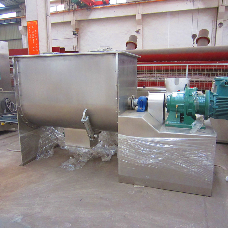 該機(jī)型由容器、螺旋攪拌葉片和傳動部件組成:螺旋葉片一般做成雙層或三層,外層螺旋將物料從兩側(cè)向中央?yún)R集,內(nèi)層螺旋將物料從中央兩側(cè)輸送,形成對流混合。